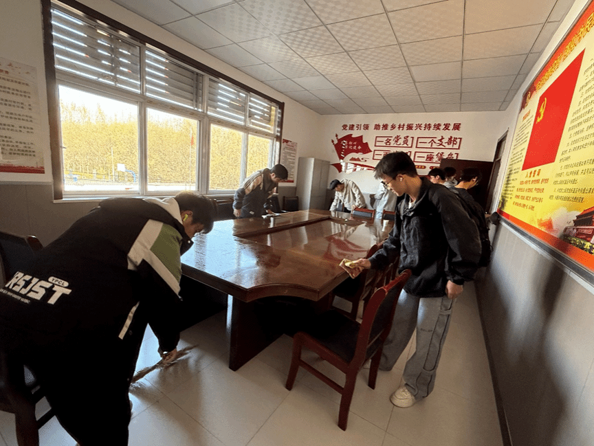 活动伊始,志愿者们按照群委会空间布局划分为3个劳动小组:第一组负责大厅及公共走廊的地面清扫、门窗擦拭第二组承担会议室的桌椅清洁、文件柜整理第三组专注活动室的器材擦拭、杂物归位。劳动中全体志愿者分工明确、积极主动,不怕脏累,重点清理了以往易忽视的角落浮尘、墙面污渍及杂物堆积问题。经过集中打扫,村委会内外环境焕然一新,办公区域整洁有序,公共空间干净清爽,为村民营造了更舒心的办事环境,也展现了青年志愿者务实肯干的作风。