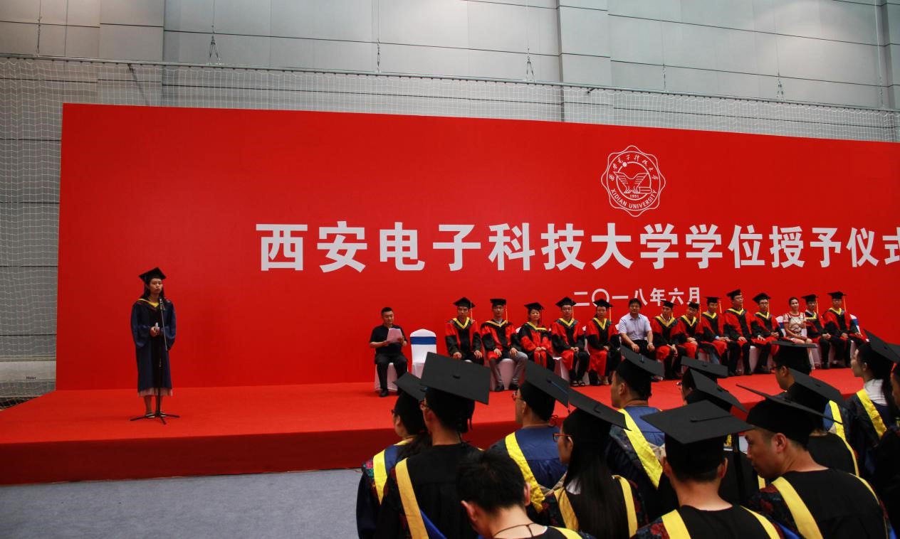 硕士研究生代表张晨阳、本科生代表李泊龙分别发言,在发言中他们回忆了在校期间与老师、同学之间一幕幕难以忘怀的时刻,有刚入学对校园生活的憧憬,有多年生活的点点滴滴逐渐升华的强烈情感,有在求学期间的收获与成长,几年的西电求学生涯,终将为每一位毕业学子刻上深深的西电烙印。不忘初心,砥砺前行,他们代表2018届材料学院毕业生感谢母校、学院以及辛勤付出的老师们的培养和帮助。