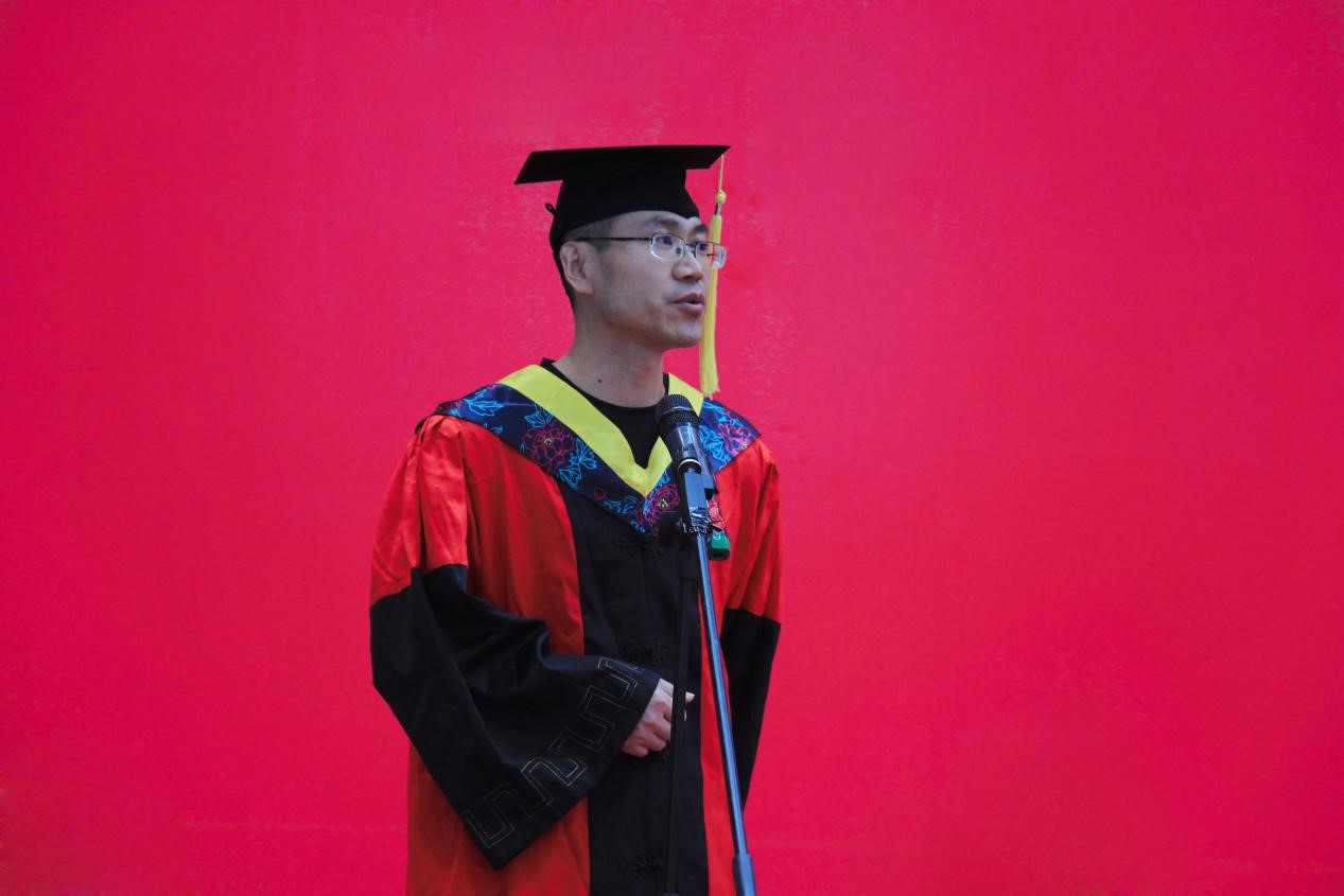 在热烈的掌声中,秦勇代表学院寄语毕业生,他祝贺同学们获得学位,对即将踏上新征程的同学们表示衷心的祝福,祝愿大家鹏程万里、大展宏图,期待大家在新的起点珍惜每一次机会,努力去实现自己的人生价值。随后,秦勇给同学们谈了三点叮嘱:一要志存高远。志向决定了今后人生的高度。希望同学们能够成为国家所需要的栋梁。二要胸怀宽广。视野的高远来自胸怀的宽广,有胸怀才能有高度,有高度才能有视野,有视野才能有远大的志向和为之不懈奋斗的毅力。同时,只有胸怀宽广才能随时看到自己内心的不足,才能真正的做到“吾日三省吾身”,才能不断进步;三要内心强大。成长的道路上不可能一帆风顺,国家的发展需要同学们有能力克服各种困难,这就需要一个强大大的内心,需要坚毅的品质。最后,他嘱托同学们多多关注学院发展,材料学院永远是同学们的家,会一直关注同学们的发展,也是会同学们的强大后盾,希望同学们有时间多回家看看。