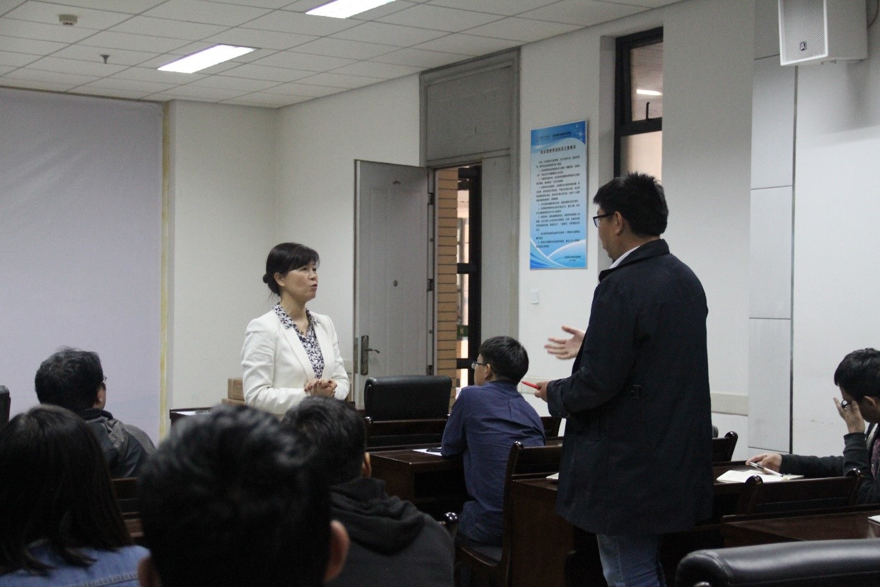 报告会于下午14:00时正式开始。王亚敏教授从巴黎东部马恩河谷大学讲起,以氧化锌材料的生长与功能型应用作为切入,详细介绍了团队十几年来在相关领域开展科研工作的情况。随后,王亚敏教授详细介绍了氧化锌纳米线阵列的光催化功能在环境治理方面的应用。讲座中,王亚敏教授详细解释了将流体中废气进行光降解的实现过程。她带领的团队通过无毒元素Fe与Ag的掺杂进一步提高了氧化锌纳米线阵列对水中工业有机染料光降解的效率,并通过微纳流反应腔实现了光降解速率从小时量级到秒量级的巨大提升。目前,其多项研究成果已经在欧盟地区进行产业化。报告会后,王亚敏教授同在场师生积极互动,耐心细致地答疑解惑,进行了更加深入的探讨,赢得了现场师生的一致好评。