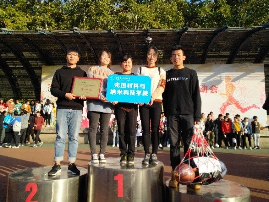最令人难忘的是拔河项目,我院对手是势均力敌的微电子院。你方力拔山兮,我方寸土不让。战况灼人,围观的同学与老师齐声呐喊,紧攥拳头为我们材料学子加油助威!虽最后一刻惜败,但那一刻齐力断金的场景深深烙印在我们每一位同学的记忆里。在50米绑腿同行的比赛中,训练有素的同学们喊着号子,整齐划一迈着步子向终点冲去,在中场部分队伍出现了一些状况,有些同学脚步出现了错乱更是波及一片,这时远远听到刘男老师焦急的声音,体育委员迅速冲上去,你抱我挪,同学们互相助力最终到达了终点。这个项目我院取得了第五名的好成绩。