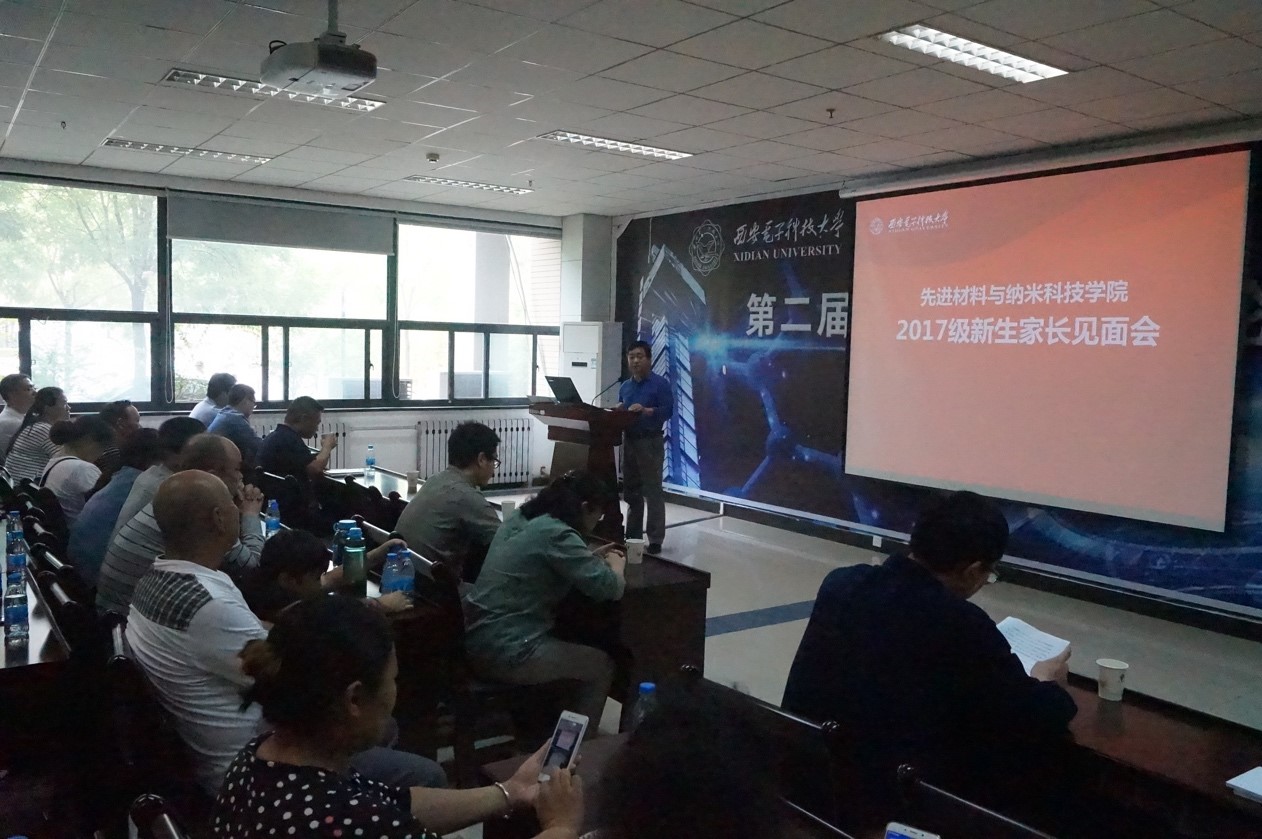 会议伊始,黄伟首先代表学院向新生家长表示衷心感谢和诚挚问候,欢迎并祝贺2017级的新生们加入到材料院这个大家庭。接着,学院党委副书记韩卿向家长们简要介绍了学校的历史沿革和发展现状,重点谈了对学生的管理和教育,他从习近平总书记在梁家河插队时的“过五关”经历讲起,提到大学新生需要经受住“五关”——自控管理关、自我学习关、自主社交关、自我发展观、自我安全关的磨练,并向家长介绍了学院学生工作的“1234”共同管理准则。随后,副院长详细介绍了学院的师资力量、专业培养、科研条件、学生就业情况,强调了本科教育在学生成才过程中的根本作用,让家长对孩子的未来有了较为明确的预期。