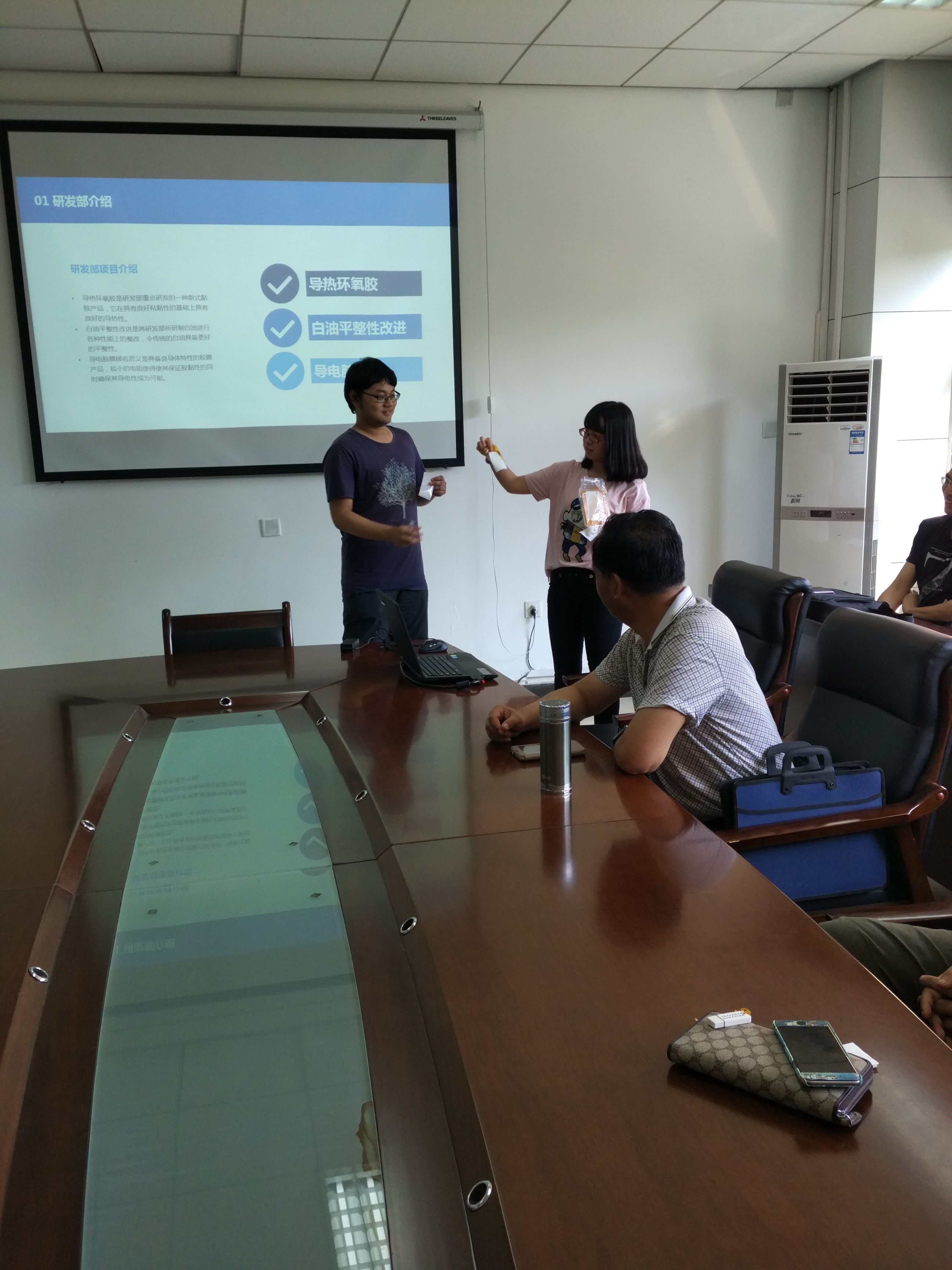 会议分为部门总结展示、老师总结实习收获以及同学们互相交流实习经验三个议程。在建材部、医药部、新型展示材料部、挠性覆铜板生产部、挠性覆铜板工艺部、挠性覆铜板研发部、挠性覆铜板技术部、挠性覆铜板质检部实习的同学们,分别介绍了各自的实习内容、技术和经验等。其中以建材部各类水泥添加剂以及改性技术,挠性覆铜板生产部超净车间的6s管理制度,挠性覆铜板研发部门各类研发实验最为吸引同学们的眼球,在老师耐心的补充讲解下,同学们纷纷表示收获甚多。