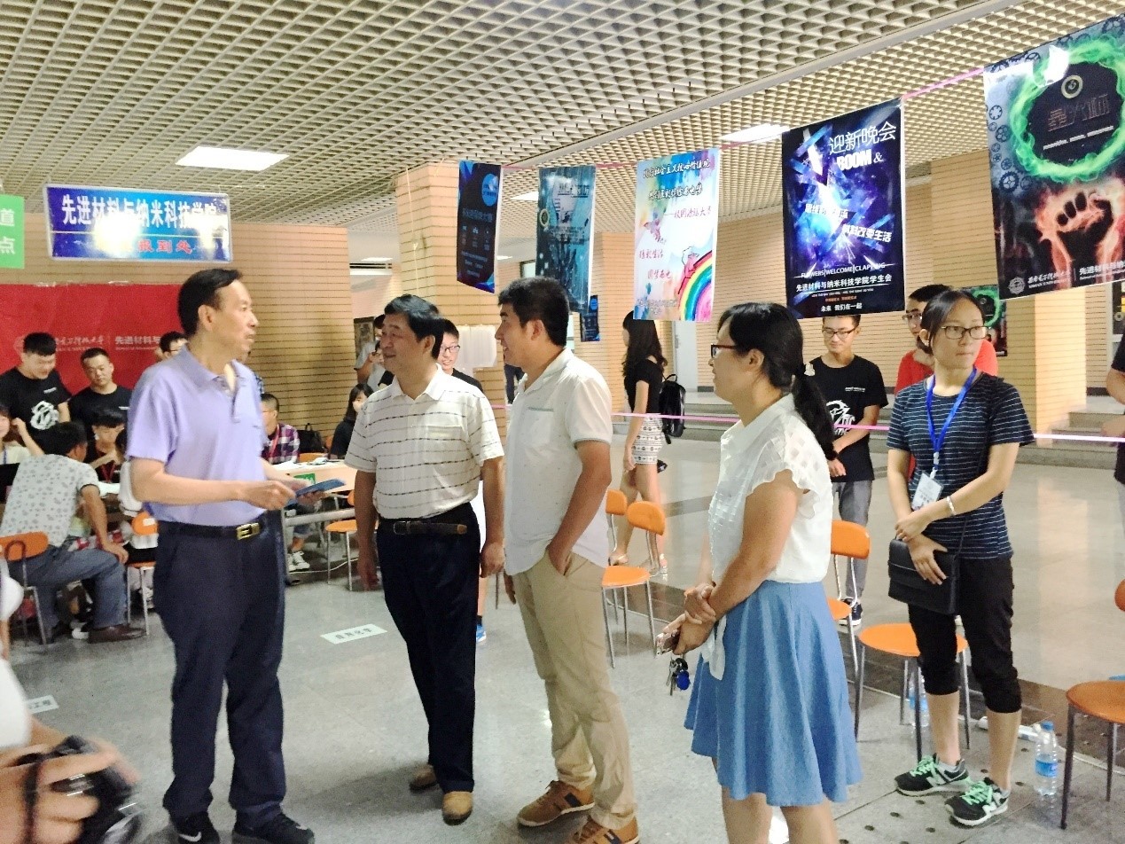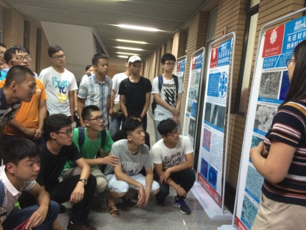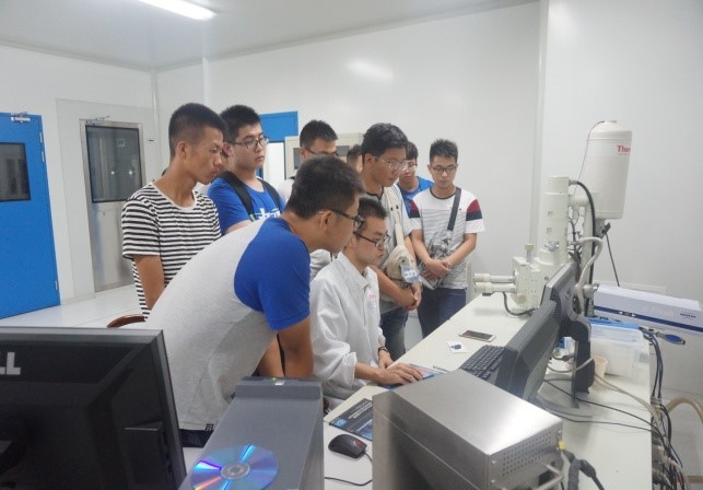为加强新生对学院的全面认识,提高学生对所学专业的认同感,下午2点,2016级新生分为三组,在教师和辅导员的组织带领下循环参观了学院材料实验室、化学实验室和测试与表征实验室。
