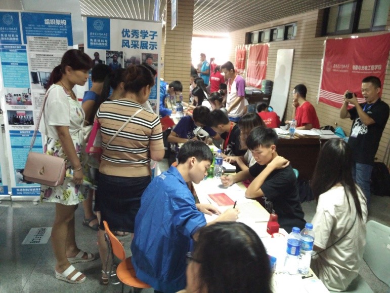 设计精美的学院展板海报、富有学院特色的纪念书签、精彩绝伦的宣传视频,一下吸引了前来我院报到的学生和家长的目光。报到注册、咨询答疑、事项通知、服务引导,迎新现场忙而不乱,规范有序。学院领导高度重视,党委书记黄伟、执行院长史小卫、院长助理李智敏等先后亲临现场,协调新生接待工作,并与家长亲切交谈,询问学生家庭情况,勉励新生入学后好好学习,用优良的成绩回报家长和社会。同时,院学生会成立志愿服务队,用学长学姐的热情和志愿服务精神迎接每一位新同学的到来,从报到点到缴费处,从餐厅到寝室,提行李、搬被褥,让新生们感受到了家的温暖。