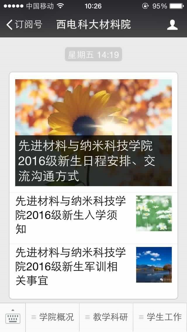 另外,学院依托微信公众平台、新生群、家长交流群等网络平台全面推送新生报到流程、入学须知等相关事宜,公布学院、辅导员联系方式,想学生之所想,急家长之所急。