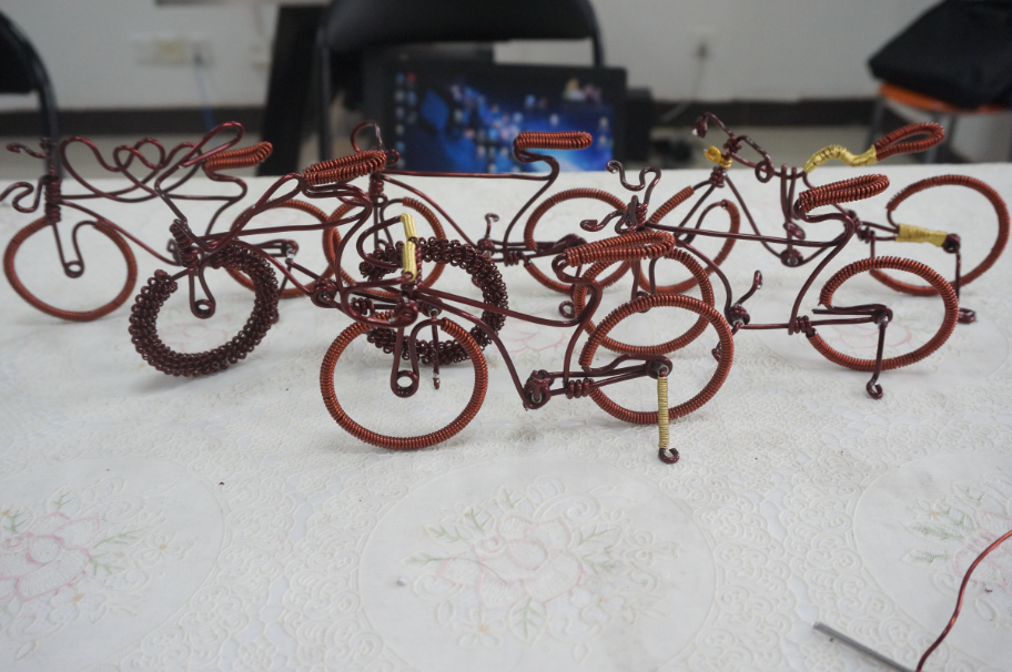 培训一开始,吴侃源先介绍了此次手工艺品培训的目的及内容,他说到:材料与我们的生活息息相关,点缀着我们日常活动,一点一点的改变着我们的生活,此次手工艺品创作,主要培训制作创意微自行车,希望大家能够认真学习,亲手做出使自己满意的工艺品。随后,他播放了制作小车的视频,并开始亲手教学,在他的细心指导下,参与的人员认真制作,很快就学会并制作了几辆微型小车。