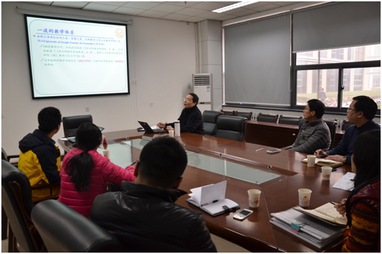 会上,施建章首先对法国格勒理工集团大学进行了简单的介绍,对格勒理工大学一流的教学体系进行了重点介绍,对教师的授课模式展开了深刻且详细的阐述。随后,施建章对法国大学严格完善的实习制度、科学的考核制度进行了论述,希望学院能够借鉴格勒理工集团大学优秀的教学模式,培养一流的本科生。