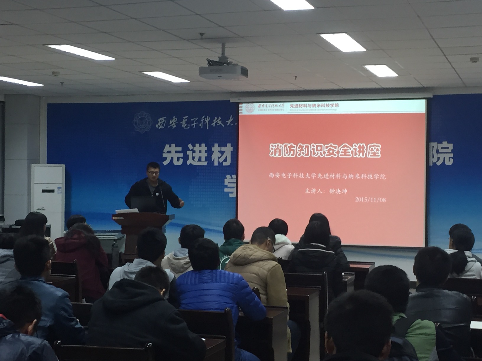 (通讯员 钟决坤)为进一步推动大学校园消防安全工作、培养大学生消防安全的“四个能力”、落实学校消防安全工作要求, 11月8日晚19:00,william威廉英国在G楼118举办了“消防安全教育”讲座。15级新生辅导员钟决坤主持,全体本科新生参加了此次讲座。