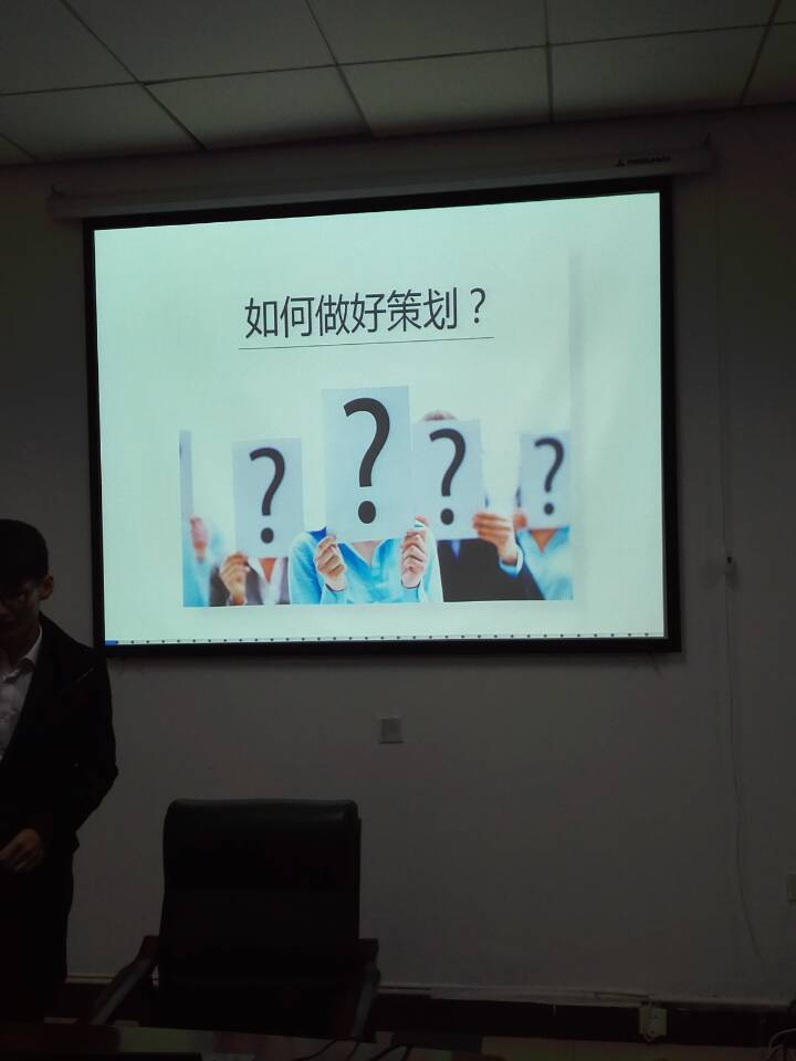 培训一开始,楠丁夫以“什么是策划”开门见山直奔主题,并阐明了一份优秀的策划对活动成功举行的意义。接着,他提出写一份好的策划书最重要的是严谨的态度。他说,在写策划书的时候,要面面俱到,用严谨的态度对待每一个问题,一个人就要像一个团队。接下来,他向大家详细地介绍了策划书的主要内容及起草时需要注意的问题。他还分享了word等软件的使用小技巧并且在大家的强烈要求下,讲解了PPT的制作方法与注意事项。