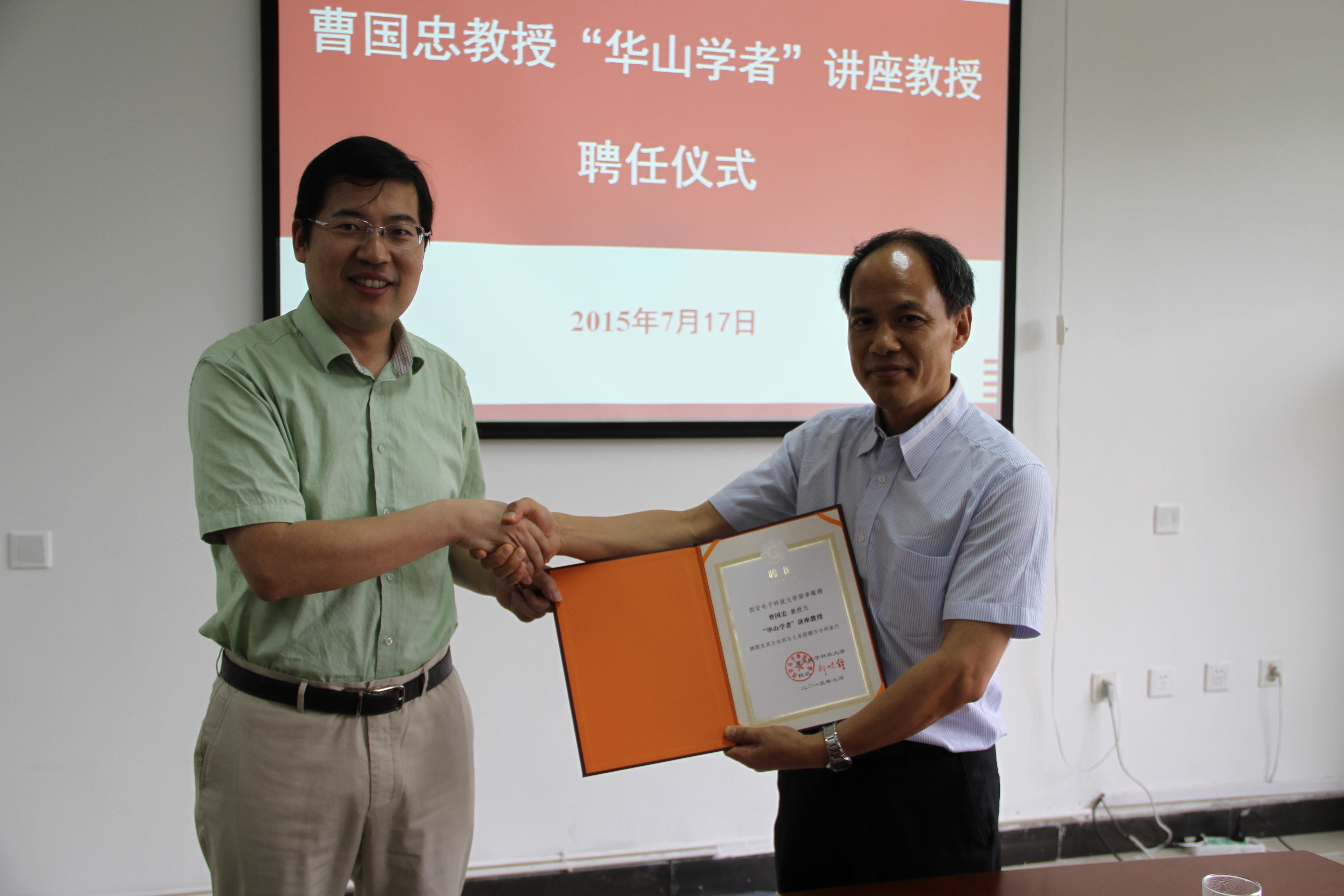 (通讯员 卢琳)7月17日,西电“华山学者”讲座教授曹国忠的聘任仪式在南校区G楼william威廉英国会议室进行,曹国忠正式受聘担任学校“华山学者”讲座教授。校长助理高新波出席聘任仪式并为曹国忠颁发聘任证书。