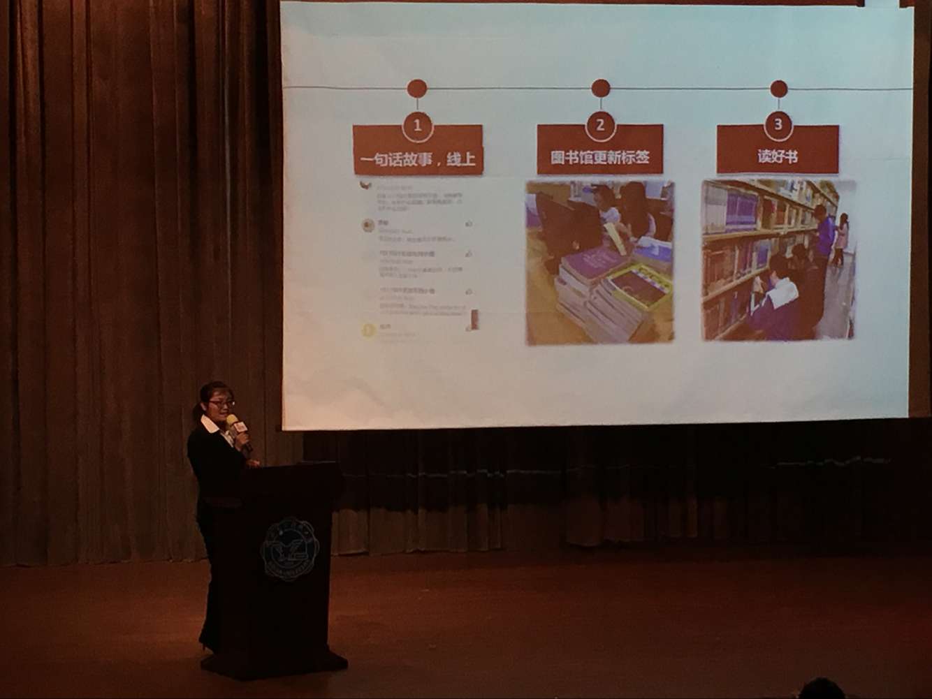 答辩顺序由抽签决定。1517021支部团支书张杰代表其支部进行了答辩。她围绕组织建设、思想建设,支部文化和温情支部四个方面介绍了支部在过去一年里的基本情况。以 “读好书养堂正之气,说好话树君子之风”为主题的图书馆旧书整理活动,Myouth平台“一句话的故事”征集活动,参观八路军西安办事处、校史馆,秦岭野生动物园志愿服务等等,这些活动充分展示了其支部在发展过程中付出的努力,以及在学校的新生风采展示大赛中取得全校二等奖的好成绩。精美的ppt制作,答辩人流利精彩的讲述,向评委展示了支部取得的丰硕成果,也展现了我院团支部昂扬向上的精神面貌,给评委老师留下了深刻印象。