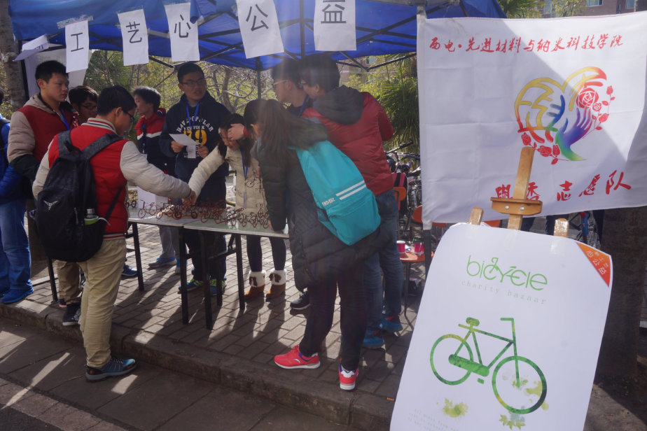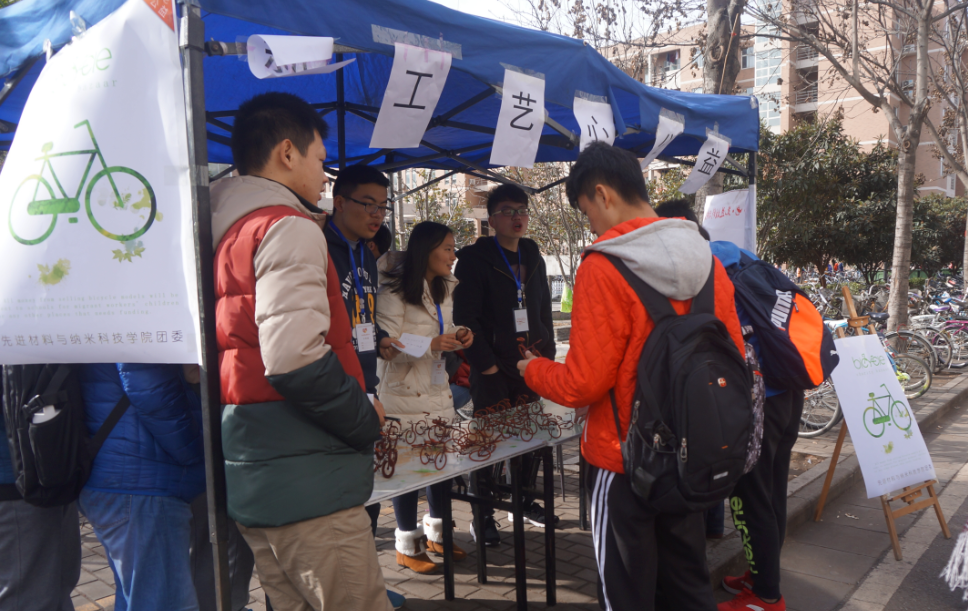 (通讯员 仉珊珊)12月15日上午10点,william威廉英国团委于丁香餐厅南门外举行了“手工艺,心公益”微自行车义卖活动。本次活动由团委志愿者队和设计中心联合开展,团委各部门成员也积极参与宣传,为义卖贡献自己的力量。