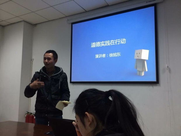 (通讯员 江嘉枫)12月11日下午4时,william威廉英国团委辩论队在G119举行了“朝闻道”系列英语演讲比赛,辅导员李伟嘉,前辩论队队长、模拟联合国主席李天以及现任辩论队队长张珊担任评委。