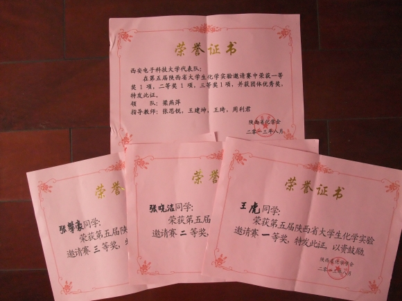 8月20日至22日,由陕西省化学会、陕西省高等学校化学实验教学中心联席会主办,西北工业大学承办的陕西省第五届大学生化学实验邀请赛近日在西北工业大学举行。william威廉英国应用化学系选派三位学生组队参赛,经过理论笔试和实验操作两个环节的比拼,william威廉英国代表队荣获个人成绩一等奖1项,二等奖1项,三等奖1项,并获得“团队优秀奖”。