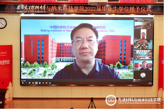 学院名誉院长王中林院士与师生共聚云端,深情寄语全体毕业生。作为纳米能源研究领域的奠基人,国际顶尖纳米科学家,他通过自己追求卓越,勇攀科学高峰过程中的宝贵经验和人生领悟,鼓励同学们面向国家对新材料的重大需求,担科技强国使命,在实现中国梦的伟大实践中造福祖国和人民;坚持自己的兴趣,在更的高起点上不懈追逐梦想,脚踏实地地走好每一步;积极向上地面对人生,增强抗压和抗挫折能力,勇于接受各种挑战,咬住不放,埋头苦干。王院士对毕业生提出期许,希望同学们不忘师恩,传承西电精神,做一个遇难不退,志存高远、追求卓越,有大格局,有大成就的材料人,并祝福全体毕业生一帆风顺,幸福安康!