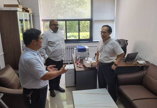会前,张进成副校长实地查看Ajit Khosla教授办公室和工作实验环境,详细了解他在西电生活情况,并转达了学校主要领导的问候。会上还就学院近期重点工作推进情况进行了交流。