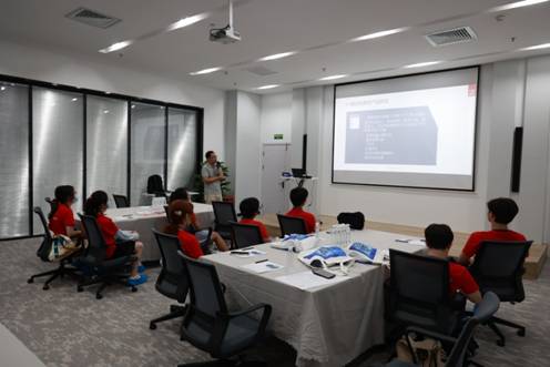 在浙江大华股份技术有限公司会议室,实践队员们与西电2010届校友、公司海外部经理安朝飞进行了深度访谈交流,纷纷就专业学习、就业择业、职业发展、行业前景等问题向学长提问,安朝飞也结合个人经历逐一进行了详细解答。大家通过此次访谈更加清晰认识到,在校期间学习基础知识要稳扎稳打,学生的本职工作就是好好学习,也纷纷表示在今后的学习生活中要更加努力上进、坚持不懈、勇攀高峰。