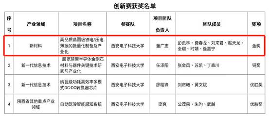 (通讯员邓悦)近日,第一届陕西省博士后创新创业大赛成功举办,并发布总决赛获奖名单,我院董广志副教授为团队负责人、彭彪林特聘教授为核心团队成员的参赛项目,以第一名的成绩获得了创新赛新材料组金奖。