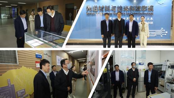 会议开始前,王中林院士在学院党委书记卢硕、执行院长杨丽教授的陪同下,实地参观了材料学院工作环境以及自驱动智能系统与传感学科方向成果展示柜、团队建设文化墙和实验室。