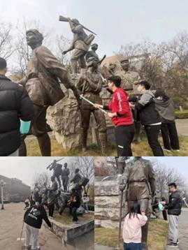 2021级共青团员侯雷表示:“这次劳动志愿服务使我受益匪浅,雕塑上或许会留下浅浅的灰尘,但先辈们的精神与事迹必将永不蒙尘,我们永远会记得,也会继续传承!”(通讯员 李逸君 卫晨龙)