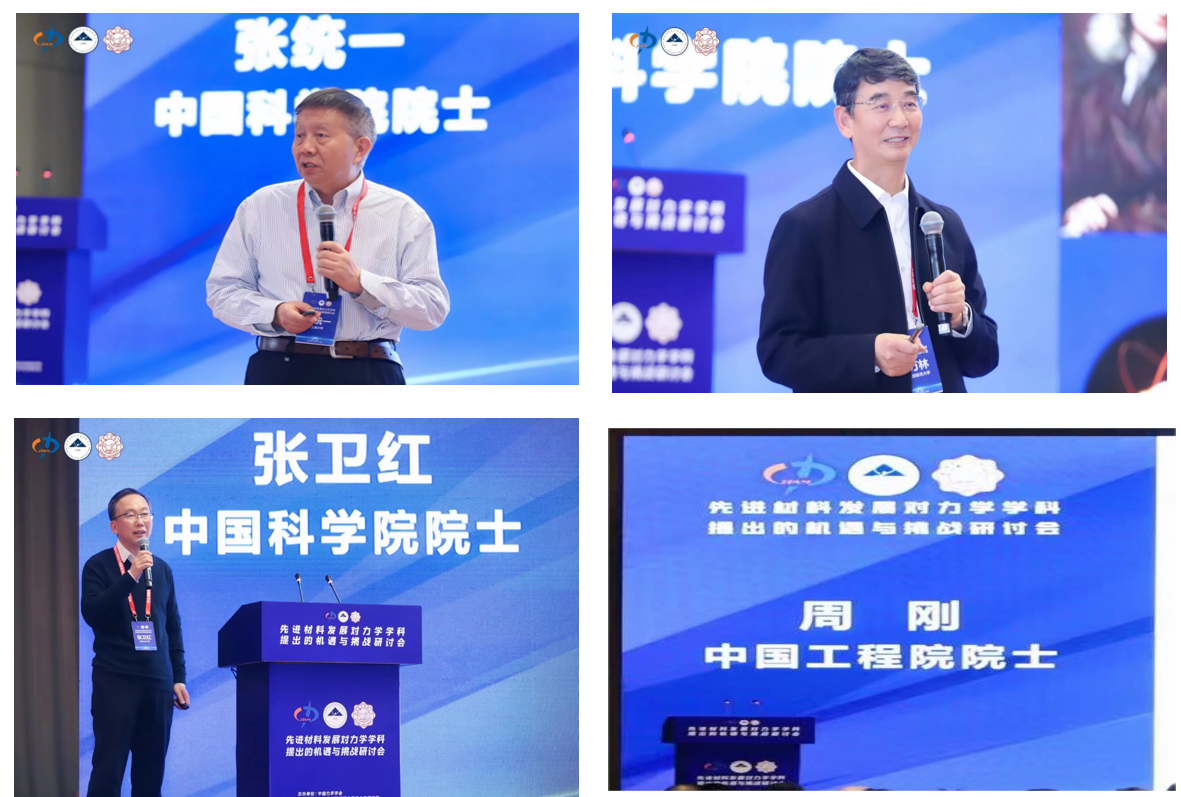 会议主会场邀请8位院士聚焦新材料与力学的双驱动、智柔体力学、跨尺度力学、智能材料与结构力学、信息力学、先进材料物理力学、轻质点阵结构力学、超高速撞击力学等国际前沿科学问题和国家重大需求交流最新成果。杜善义先生作了题为《新材科与力学的互为驱动发展》的报告;杨卫院士分享了《智柔体力学》的报告;魏悦广院士围绕《纳米结构材料的跨尺度强化与软化力学表征》作报告;冷劲松院士聚焦《形状可变智能结构:航空航天及4D打印》作报告;张统一院士详细介绍《从材料/力学信息学到材料/力学GPT》;郭万林院士解析了《先进材料物理力学研究进展》;张卫红院士分析了《轻质点阵结构的力学建模分析与优化设计》;周刚院士就《超高速撞击混凝土靶和多层金属靶机理研究》作报告。报告和交流讨论现场气氛积极热烈,迸发学术火花。