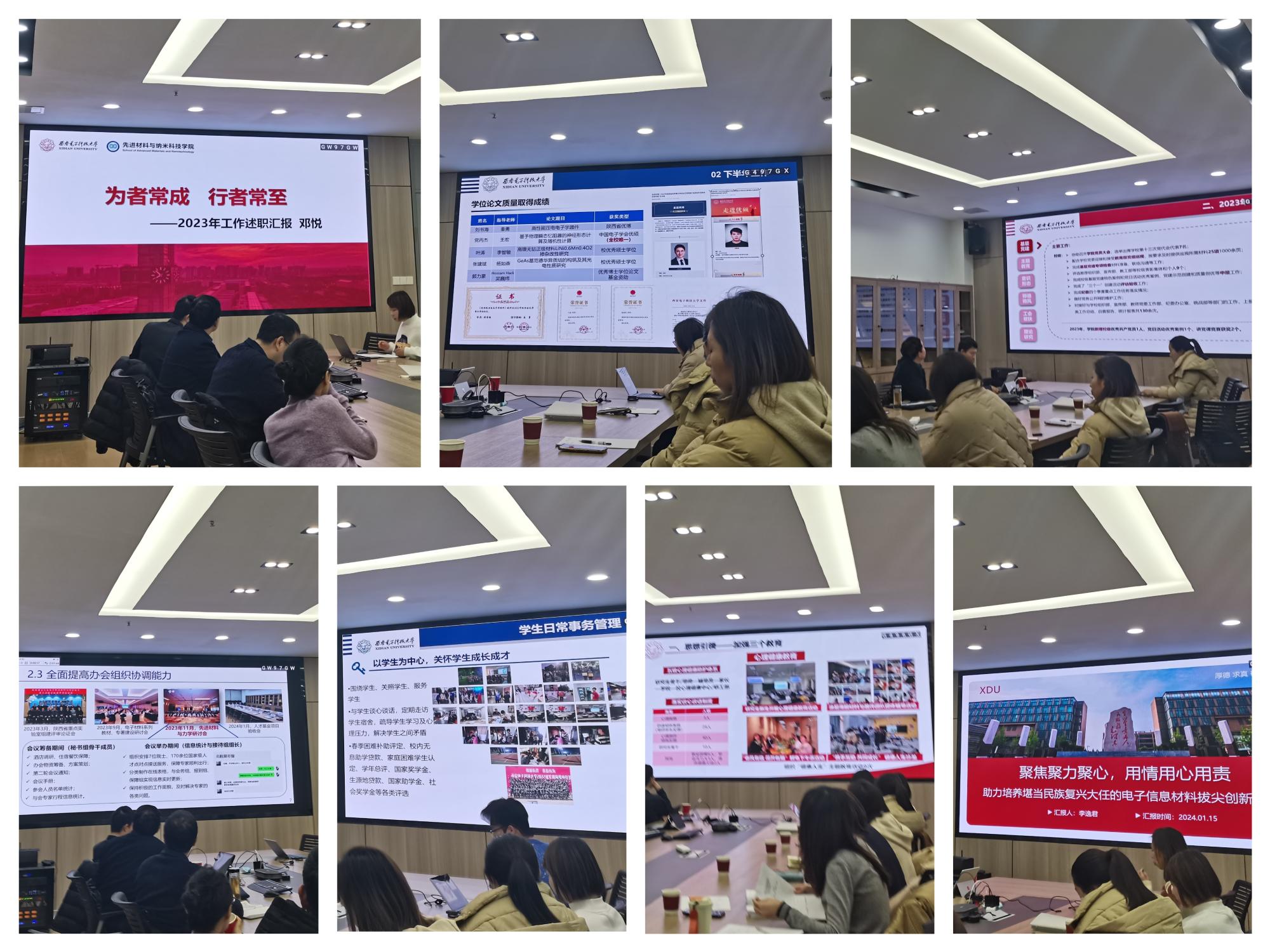 (通讯员 杜小红)2024年1月15日,william威廉英国在G-142举行2023年度教职工述职考核工作会,材料系、化学系、纳米系、智能所、院机关等90余名教职工分5组开展述职汇报交流。学院领导班子、系/所负责人等参会并作点评。