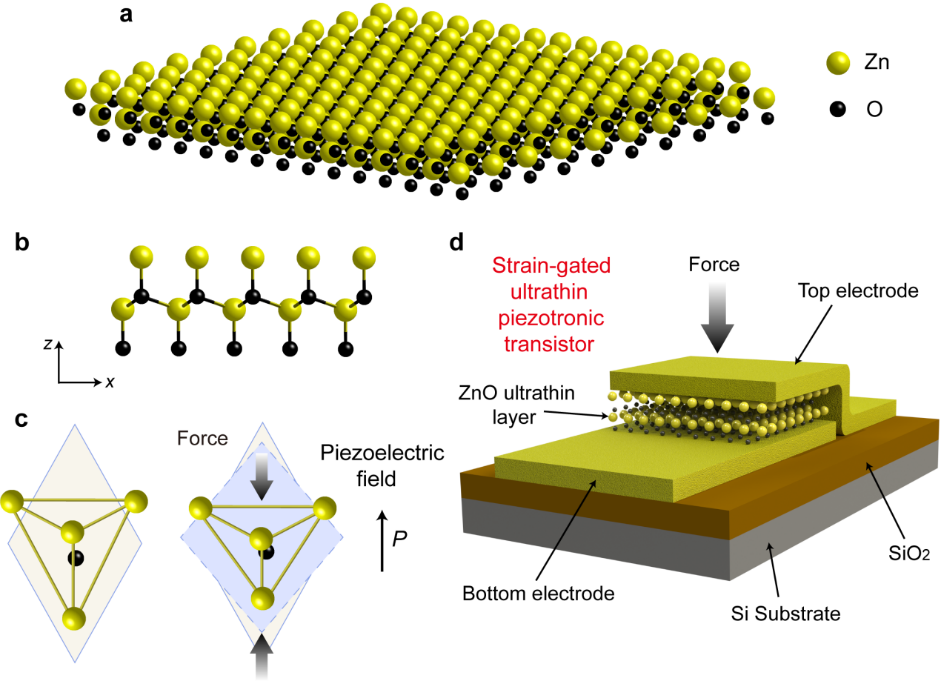 王中林院士于2006年首次提出一种利用完全不同于传统CMOS器件工作原理的新型晶体管-压电电子学晶体管(Piezotronic transistor),利用金属-压电半导体界面处产生的压电极化束缚电荷(产生压电电势)作为“栅极电压”来调控晶体管中载流子的输运特性。这种压电电子学效应已经在具有纤锌矿结构的压电半导体材料中得到了广泛证实。这种利用界面调控替代传统外部沟道调控的两端结构晶体管,有可能打破沟道宽度的限制。