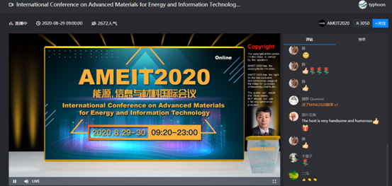 (通讯员:王悦 赵雅倩)2020年8月29日-30日,由郝跃院士、王中林院士、Paul S. Weiss院士以及Lars Samuelson院士等知名专家发起并任主席的能源、信息与材料国际会议(International Conference on Advanced Materials for Energy and Information Technology,简称AMEIT2020)在WilliamHill体育成功召开。,来自亚洲、欧洲、北美、澳洲的26位知名院士、专家作了精彩报告,参与互动人数达2.04万人次。本届会议克服疫情造成的困难,通过在线形式提供国际化交流高端平台,促进能源领域基础学科之间深层次交流与融合,推动未来洁净能源的发展,进一步推进引领能源信息与材料研究的创新。