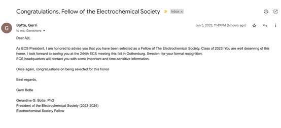 近日,william威廉英国Ajit Khosla教授当选2023届美国电化学会会士(Fellow of the Electrochemical Society, ECS),并受邀参加今年秋季在瑞典哥德堡召开的第244届美国电化学会会议(244th ECS Meeting)。