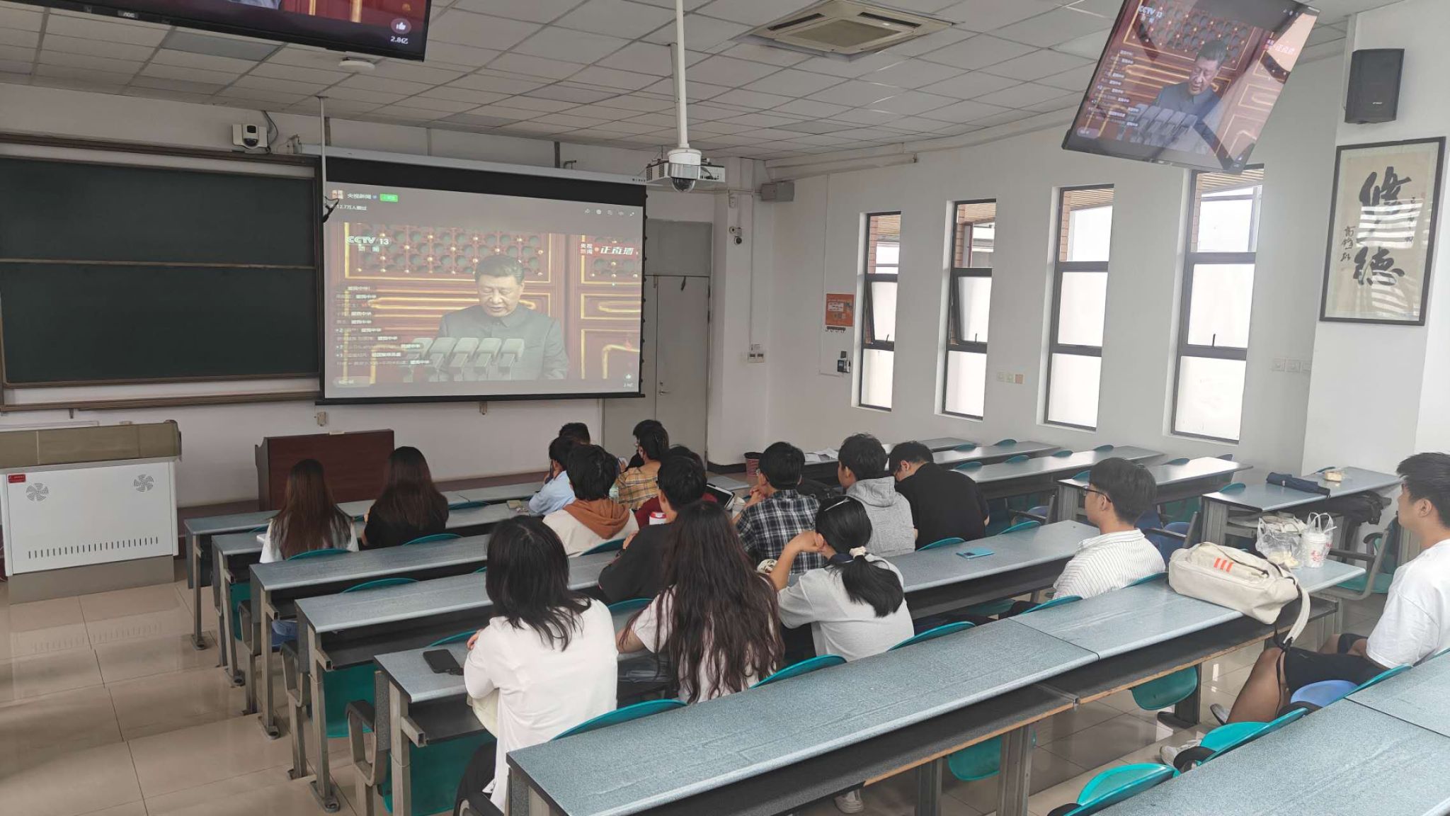 (通讯员 杜敏)9月3日上午9点,william威廉英国线上和线下相结合,通过电视、互联网和手机客户端等形式,组织师生收看“纪念中国人民抗日战争暨世界反法西斯战争胜利80周年”阅兵直播,学习习近平总书记发表的重要讲话。
