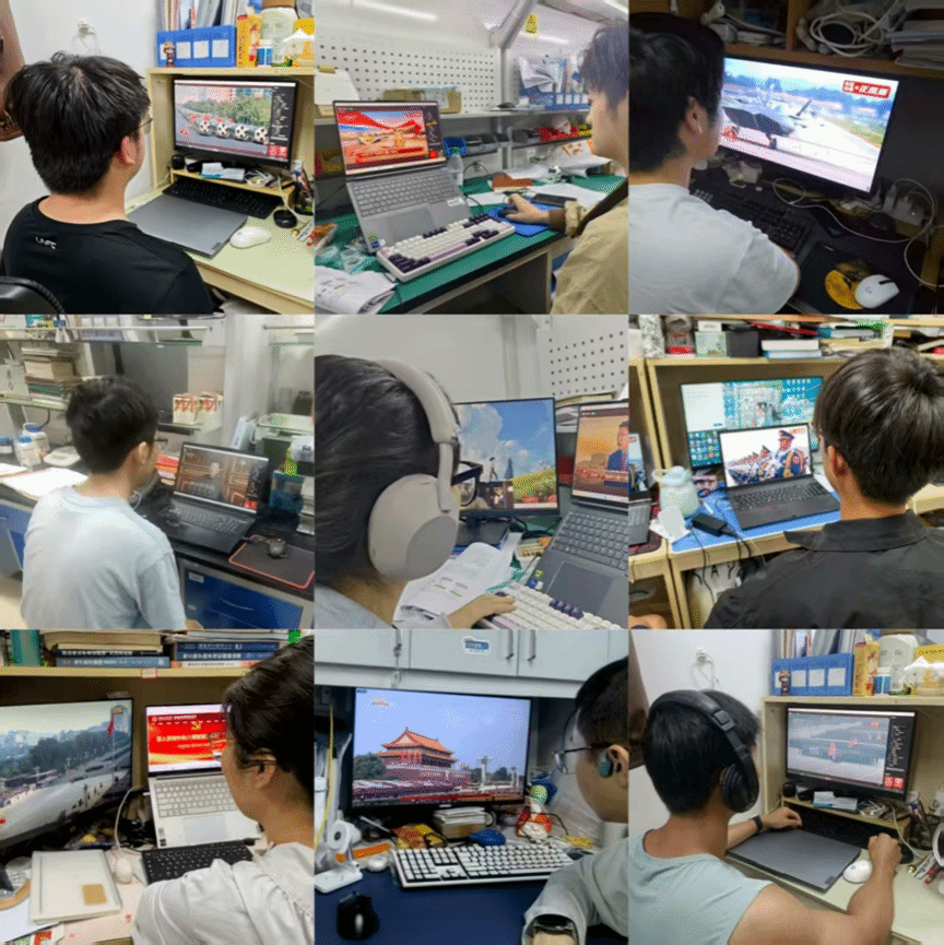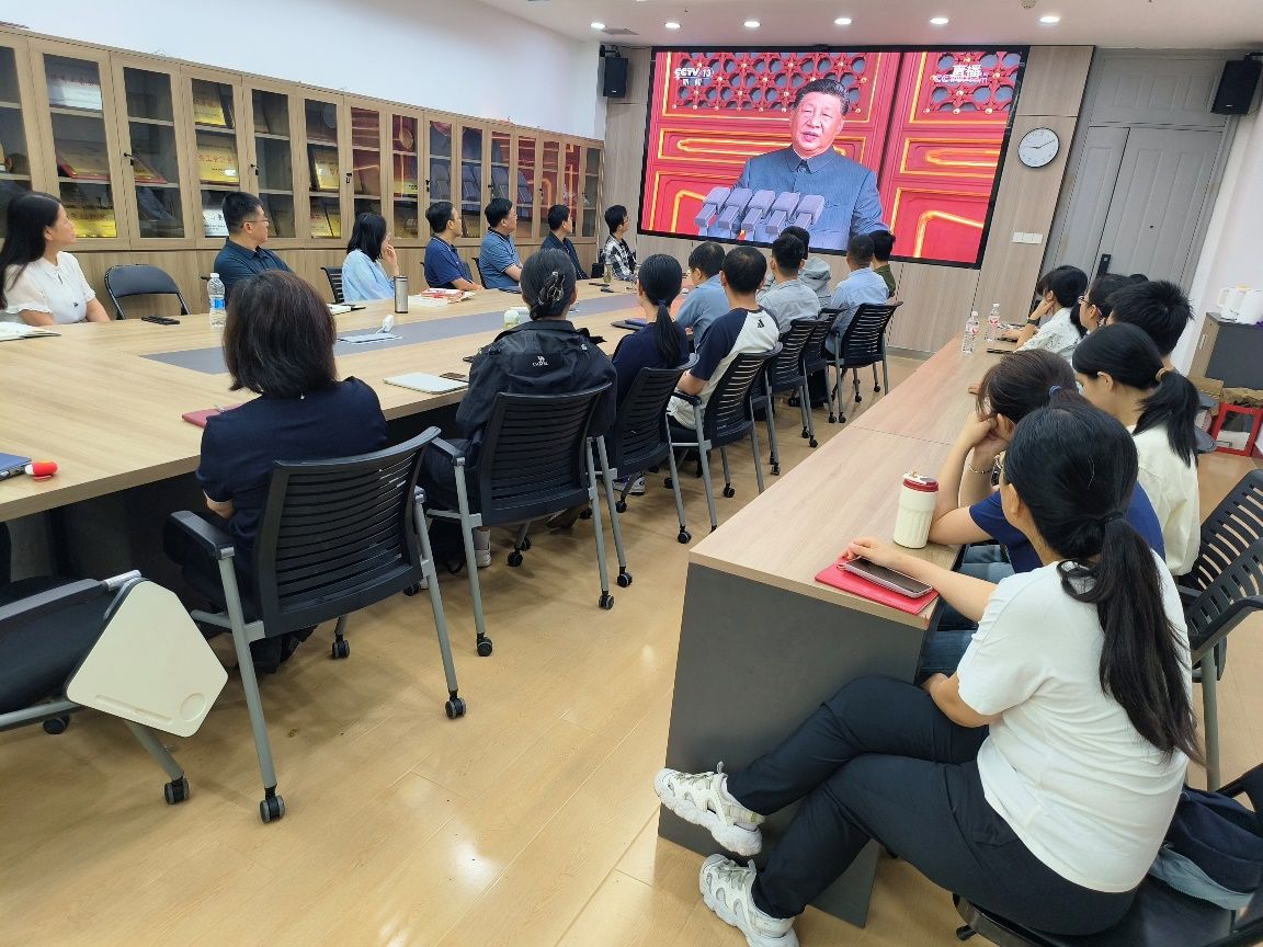 直播结束后,学院党委书记宋刚锋说:“观看盛大阅兵仪式,聆听习近平总书记重要讲话,心潮澎湃,深受震撼,铿锵步伐、巍峨阵列,既是国威军威的集中展示,更是百年奋斗历程的深刻昭示。历史川流不息,精神代代相传,我们要从恢弘史诗中汲取力量,学院党委将主动谋划,奋发有为,营造潜心育人、奋发向上的良好氛围,为国家培育更多担当民族复兴大任的栋梁之材;学院广大教师要牢记教书育人使命,立足三尺讲台倾心育人,将爱国情怀融入育人全过程,用于攻关卡脖子技术,服务国家科技自立自强;学院广大学生要自觉树立远大理想,刻苦学习专业知识,锤炼过硬本领,以实际行动为强国建设、民族复兴贡献力量!”