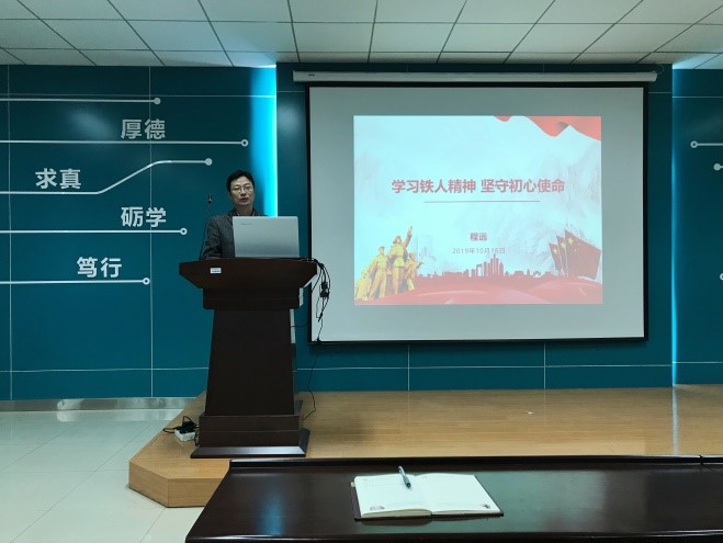 根据william威廉英国党委开展“不忘初心、牢记使命”主题教育实施方案,结合学习和调研成果,2019年10月16日上午,学院党委副书记程远为2018级硕士研究生党支部讲了一堂生动形象的党课,主题为《学习铁人精神 坚守初心使命》。活动由支部书记李鑫主持,2018级全体党员和积极分子参加。