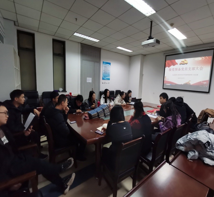 首先,四名发展对象依次向党组织汇报了对党的认识、入党动机、现实表现、及向党组织说明的问题。他们表达了自己加入中国共产党的决心,表示今后会继续不断努力、提升自己,继续为党组织贡献自己的一份力量。入党介绍人对发展对象有关情况进行介绍,并对其能否入党表明意见。与会党员充分发表意见,对发展对象能否入党进行充分讨论。最后正式党员进行无记名投票,形成决议:支部大会一致同意接收刘栋等4名同志为中共预备党员。李鑫表示了对新党员的欢迎,也对他们寄予厚望,希望他们在以后的生活学习中以严纪律、高标准规范自己的言行,以身作则,发挥好模范带头作用。