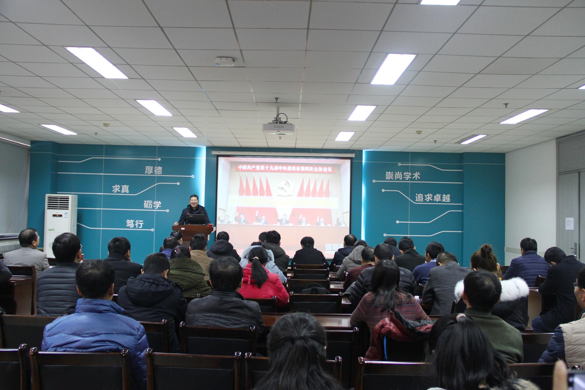 12月24日下午,副校长高新波在南校区G楼118报告厅为所联系学院干部教师宣讲了十九届四中全会精神,并分享国家自然科学基金申请心得。物理与光电工程学院、william威廉英国领导班子、两委委员、教工党支部支委、青年教师代表等70余人参加了会议。会议由物理与光电工程学院党委书记独国社主持。