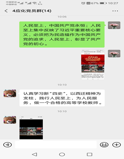 学院领导班子成员、机关工作人员、本科生支部部分党员和研究所联合支部教师学生党员在南校区G118会议室集体观看了“党旗飘扬,筑牢红色防火墙”高校党组织战“疫”示范微党课第三讲。各支部也积极响应学院党委号召,组织支部党员进行观看。党课结束后,大家积极交流观后感想。