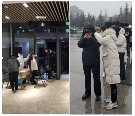 凌晨六点,在学校远望谷看到了主动报名志愿者的机关支部党员李逸君同志,“同学你好,请先测温。”“请大家保持间距,戴好口罩,准备好一码通。”“请这边扫码。”……李逸君同志积极参加研考工作防疫检测,配合学校核酸检测点秩序维护、扫码测温、考研学生信息核对等工作,为打赢这场特殊的研考之战贡献自己的力量。
