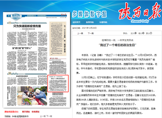 “我过了一个难忘的政治生日。”12月23日6时许,WilliamHill体育先进材料与纳米技术学院的学生党员纪宁戴着“党员先锋岗”袖标,早早赶到学校核酸检测点,维持现场秩序,提醒同学们排队保持一米距离。他说,中午休息时,手机里收到校党委组织部发来的入党2周年电子贺卡,很受鼓舞。