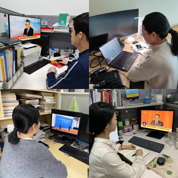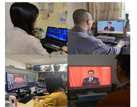 学院领导班子成员、学生党支部党员代表、党务干事在南校区G119会议室集体观看了开幕式,会议初始,全体起立奏唱国歌,之后大家认真聆听了李克强总理的政府工作报告。报告中回顾了2021年我国经济社会发展取得的成绩,“十四五”实现良好开局,并指出今年发展主要预期目标和下一阶段工作总体部署。报告指出,2021年是党和国家历史上具有里程碑意义的一年。以习近平同志为核心的党中央团结带领全党全国各族人民,隆重庆祝中国共产党成立一百周年,胜利召开党的十九届六中全会、制定党的第三个历史决议,如期打赢脱贫攻坚战,如期全面建成小康社会、实现第一个百年奋斗目标,开启全面建设社会主义现代化国家。2022年将继续统筹疫情防控,在优化和落实减税政策、进一步转变政府职能、深化财税金融体制改革、优化和稳定产业链供应链、扎实推进农村改革和乡村建设、加强污染防治和生态建设、推进卫生健康体系建设等重点方面指明了方向。大家在观看过程中仔细聆听,认真记录李克强总理讲话要点,对于关心的热点进行讨论交流。会后,各系所、各支部教师学生结合本职工作和学习,进行了热烈的讨论和交流。