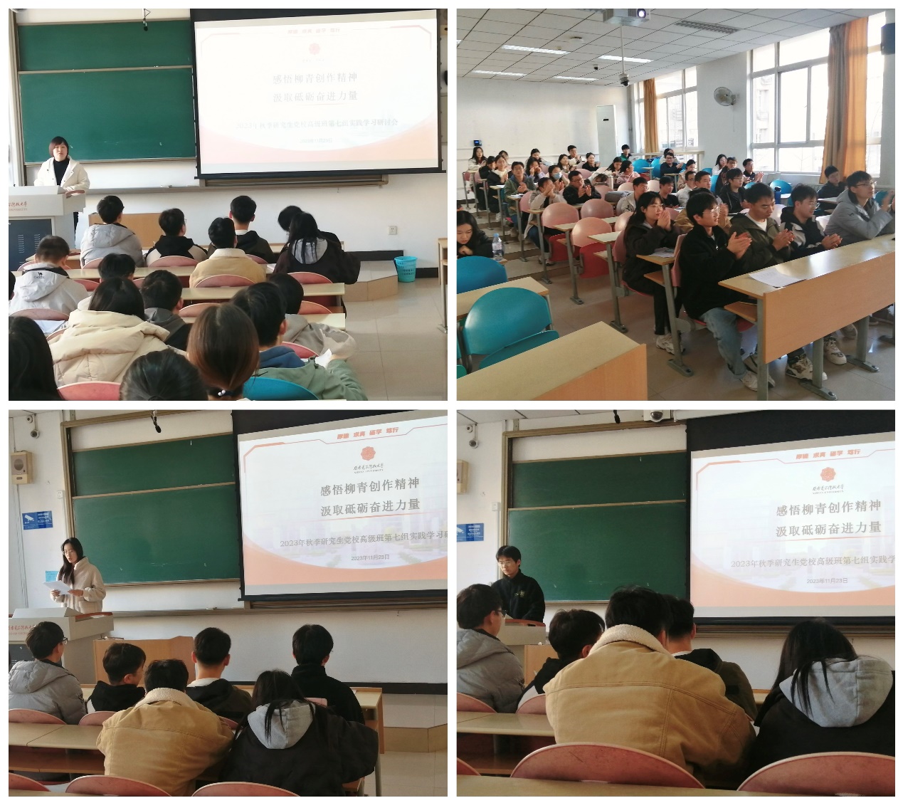 研讨会上,来自材料院、数统院、生科院、空间院的高党学员们踊跃发言,热情分享了自己的学习感悟。生科院学员陈昭旭表示,柳青的一生不仅是文学创作的历程,更是红色血脉的传承与延续,柳青的精神对他的触动颇深。来自空间院的潘强表示,柳青毅然辞去北京优厚的干部待遇,一头扎进皇甫村的人民群众身边,这种将自己的生命献给国家的奉献精神让他动容。材料院学员汪彦勇动情地谈到,刘田民老先生放弃城中工作,回到村里为柳青守墓,一守便是几十年,这种来自老党员的坚守,这种不忘初心、无言奉献的精神值得大家学习。数统院学员姚强则勉励同学们,作为新生科技力量,希望同学们向柳青先生学习,要守得住初心,担得起使命,把学术生命融入到国家发展中,把科学追求融入到建设祖国的伟大事业中。