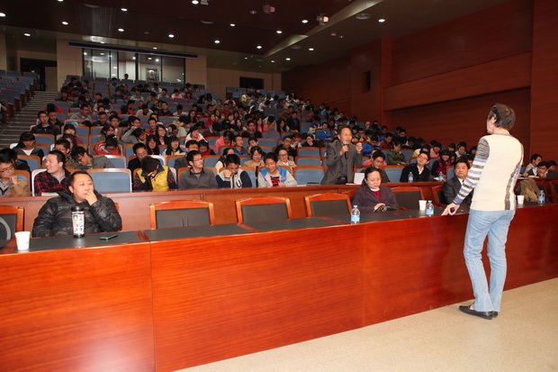 报告会上,Pileni院士对超晶体的定义、生长和应用进行了生动而深入的阐述。纳米晶体结构也就是纳米颗粒的结晶度,控制了颗粒在超晶体中所表现出来的集群性能,以及超晶体的光学、电学、力学和一系列的物理、化学特性。Pileni院士为与会师生直观生动地演示了纳米技术与自然界中众多现象存在共性,总能找到自然界中的纳米世界。Pileni院士深入浅出地报告内容和大师级的学术水平很快将与会老师和同学们的积极性调动起来,现场气氛异常活跃。