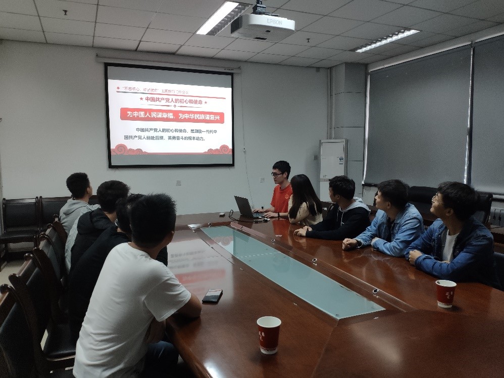 首先,党支部书记陈德鑫从主题教育背景、重大意义、总要求和目标任务展开,就党的初心和使命是什么、为什么要不忘初心牢记使命以及如何才能做到不忘初心牢记使命三方面进行详细讲述。接着对如何做一名优秀研究生党员,讲述了自己的观点。他提出,认真学习党的基本知识,学习习近平新时代中国特色社会主义思想,学习科学文化和业务知识,是党员学习的主要内容。党员的标准越来越高,是为了更好的为人民服务;而作为研究生党员,更应努力学习,提升自己为人民服务的本领。