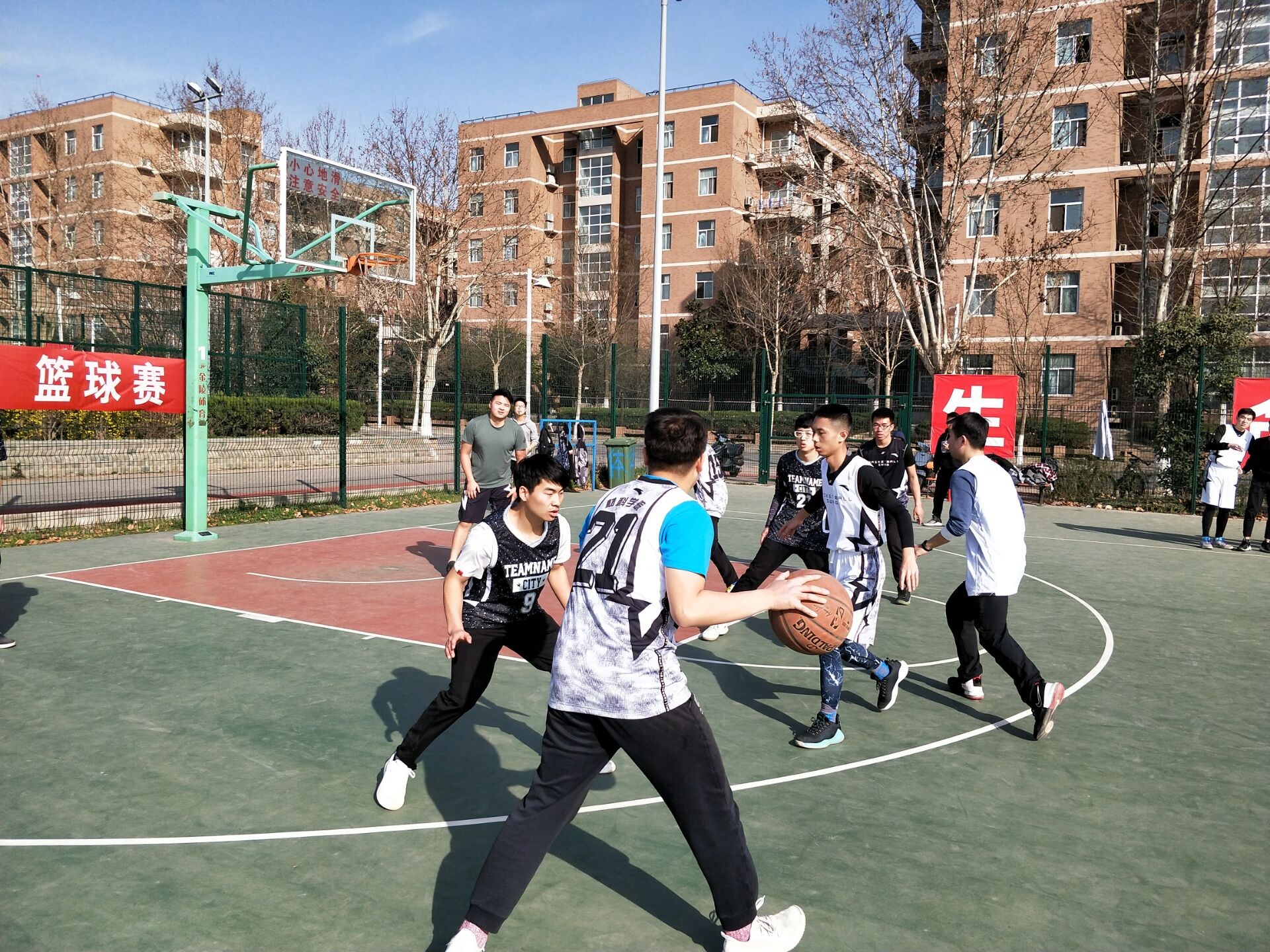 3月15日下午四点进行的第一场篮球比赛,是由大二联队对战大三联队。他们之间相互切磋球技,互相学习,共同进步,最终比赛以60:33结束,大三联队赢得了比赛的胜利。