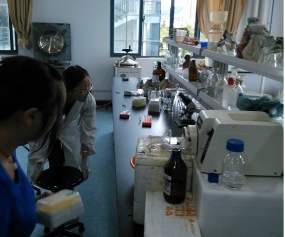 第一天我们的队员分成两个小分队,一号分队主要是与先前联系好的昆工学生一起对滇池水取样测定其藻类种类并记录,二号分队主要是在昆工校内外进行我们的宣传工作,让更多人来参与我们的的问卷。队员们相互配合,虽然天气炎热但队员们依旧很积极,正因为队友们的努力,宣传工作和藻类研究都进行得很顺利。
