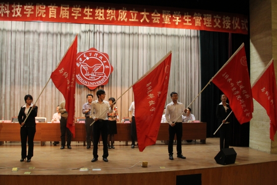 学生管理交接仪式在南校区大学生活动中心小剧场举行。学院筹备组组长、副校长郝跃出席大会并讲话。