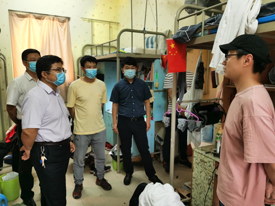 (通讯员:邓悦)7月1日,材料学院党委书记卢硕、党委副书记程远、副院长高宝铜、副院长杨如森等领导班子成员前往2016级毕业班以及2017级学生宿舍,亲切看望慰问即将毕业离校的2020届毕业生以及返校学生。