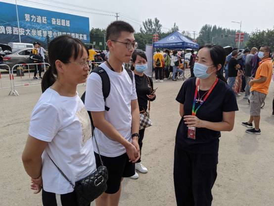 “我们学院设有材料科学与工程、应用化学、纳米材料与科技三个专业,今年学校实行大类招生,三个专业统一为‘材料大类—电子信息材料与微纳器件’。”学校东门外,学院展板前,被新生家长围在中间的学院副院长施建章耐心地讲解着。因疫情防控需要,新生家长无法进入校园,往年的“新生家长见面会”无法举行。为帮助新生家长了解学生所学专业,消除疑问与顾虑,学院精心设计了宣传展板,并选派教师志愿者在东门外为新生家长详细介绍学院基本情况、学科设置、专业介绍、科研平台、实验环境、学科竞赛、科研获奖、毕业去向等。学院党委书记卢硕、副书记程远、副院长高宝铜、教师代表庞海丽、谢涌、刘菲、黄云霞、刘金妹参与其中。
