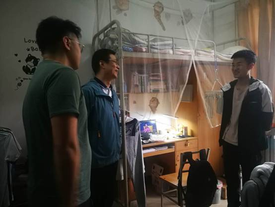 9月30日上午,党委书记卢硕带领班子全体成员、办公室主任和辅导员逐个走访了学院实验室、自习室,询问学生假期安排,叮嘱学生注意实验室安全等注意事项。下午,学院班子和全体学工干部走访了各年级本科生宿舍,了解学生节前思想动态,向学生介绍“双节”期间学校及学院活动安排,叮嘱学生劳逸结合,适当放松,合理安排假期生活,并着重提醒学生注意宿舍用电、出行安全、防火防盗等。