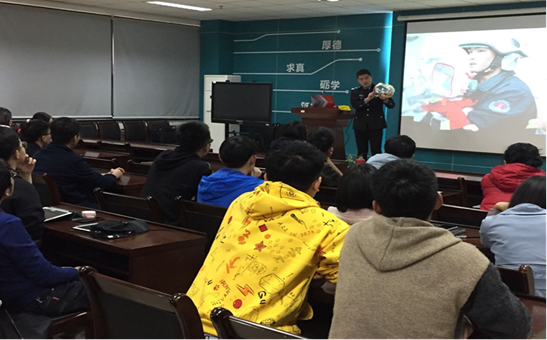 消防警官首先向大家讲述了一些火灾的案列,让我们了解了火灾产生的原因及所造成的严重后果,呼吁大家提高消防意识,关爱生命;随后又讲解了消防的三要素:消防知识、消防意识及消防工具。针对火灾的主要类型——电火灾,燃气,煤气等做了重点讲解,教给了师生们防范的基本常识,提高了火灾防范和火场逃生的自我保护能力;最后消防警官向大家展示了各种消防器材的使用方法,让大家学到了如何应对突发的火情。