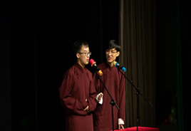 晚七点整,随着ton乐队的歌曲《漂浮群岛》的准时响起,迎新晚会正式开始。歌曲、宅舞、相声、小品等13个精彩的节目都在舞台上展示出独特的魅力。小品《上学那些事》勾起了同学们高中生活的回忆、《部长团舞蹈》以反差、搞笑的风格引得全场爆笑;更有宅舞社元气满满的《如今的我们》、介四相声社风趣幽默的《我是歌王》。节目中间陆续放出的彩蛋视频,也调动起了全场同学的热情,整场晚会高潮迭起,掌声、欢呼声此起彼伏。
